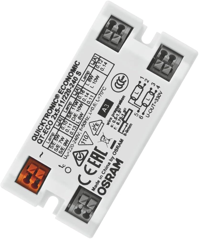 Caratteristiche prodotto: Tensione di alimentazione: 220…240 V. Tensione di linea: 198…264 V. Frequenza di linea: 50 Hz | 60 Hz. Indice di efficienzae Osram Dulux S Statecznik Elektroniczny QUICKTRONIC ECONOMIC QT-ECO 2X5-11/220 Osram Dulux D 2 X Dulux S / E 5-11W 2 X Dulux D / E 10W
