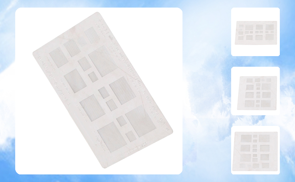 Possono essere riscaldati dalla macchina ad aria calda, questi stencil non sono facili da deformare quando riscaldati. Possono essere riscaldati dalla macchina ad aria calda, questi stampini non sono facili da deformare quando riscaldati. ⭐【Materiale di Alta Qualità】 Realizzati in acciaio inossidabile 304 di alta qualità, questi stencil for reballing BGA presentano uno spessore perfetto della rete in acciaio, fornendo una lunga durata. ⭐【Non si Deforma Facilmente】 Con la loro struttura robusta, questi BGA stencil sono in grado di resistere al calore delle macchine ad aria calda senza deformarsi, garantendo prestazioni affidabili durante la saldatura. How to ReBall BGA's ReBalling Stencils BGA Spheres and Solder Balls. Helpful Tecniques. BGA RE-BALLING QUALITY METHOD Originally Pioneered By Zephyrtronics Le specifiche sono contrassegnate sulla superficie, comode da scegliere. ⭐【Design Pratico】 Le specifiche sono chiaramente contrassegnate sulla superficie di ogni BGA reballing stencil, rendendo facile scegliere quello giusto per le vostre attività di saldatura. Bga Reballing Chip Stencil Bga Reballing Station Stencil For Reballing Ic Reballing Tools Game Universal Reballing Chip Stencil Caratteristiche: Questi stencil sono realizzati in acciaio inossidabile di alta qualità, lo spessore della rete in acciaio è perfetto. Questi stampini sono realizzati in acciaio inossidabile di alta qualità, lo spessore della maglia d'acciaio è perfetto. Specifiche Tecniche: Materiale: Acciaio inox. Colore: Argento. Quantità: 33 pezzi. Peso: Circa 61 g. Questi stencil garantiscono una lunga durata e una perfetta distribuzione del calore. 14 x Stencil BGA per sfere da 0,5 mm. È appositamente progettato per laptop, desktop, scheda madre di comunicazione ponte nord-sud e scheda grafica, ecc tutti i tipi di BGA patatine. 3 x Stencil BGA per sfera di saldatura da 0,76 mm.
