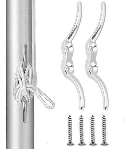 Tendalini Per Barche KSOIQPU 2 Pezzi Tendalino Per Barca,Accessori Per Pennoni,Gancio Per Morsetto Per Stecca Marina,Stecca Per Corda Per Penniere,Accessori Per L'Ormeggio Di Barche A Gancio,Yacht Per Barche Accessori Tendalino Barca ✅ La confezione include: Riceverai 2 pezzi di ganci per stecca con una superficie completamente lucida e una base di supporto che stringe saldamente la corda e impedisce che venga sollevata dal vento. Gancio per Morsetto per Stecca Marina,Stecca per Corda per Penniere,Accessori per l'Ormeggio di Barche a Gancio,Yacht per Barche ✅ Facile da installare: le nostre tacchette di occupazione sono semplici da installare, basta installare le viti direttamente nei fori di montaggio, non è necessaria alcuna foratura o saldatura. Ideale per fissare corde ad aste di bandiere, barche, tende da sole, persiane, teloni, ecc. Se hai domande, non esitare a contattarci e troveremo una soluzione adatta a te. ✅ Versatile: i nostri ganci ad artiglio sono adatti a tutti i tipi di fissaggio di funi cieche e di corde per aste di bandiere e barche. Può essere utilizzato per sostituire direttamente le bitte d'ormeggio vecchie o danneggiate per rendere la corda più stabile e antivento.