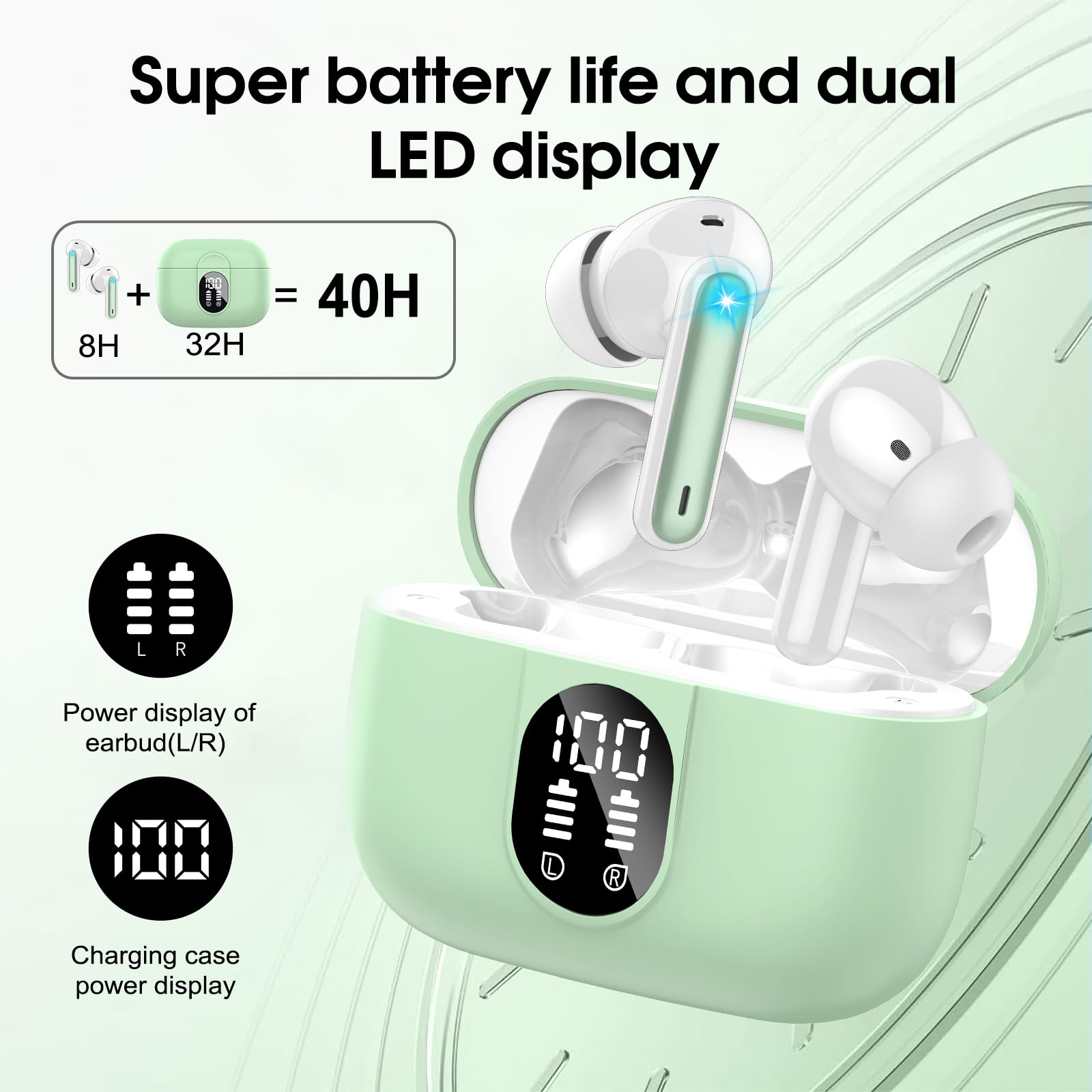 Cuffie Bluetooth, Auricolari Bluetooth 5.3 Stereo HiFi Con 4 HD Mic, Cuffie Wireless In Ear ENC Cancellazione Rumore, 40 Ore LED Display Touch Control, Cuffiette Bluetooth IP7 Impermeabili, Bianco