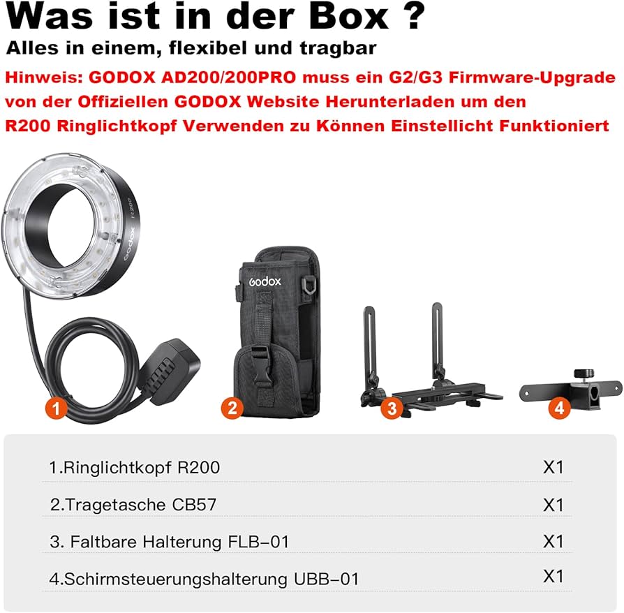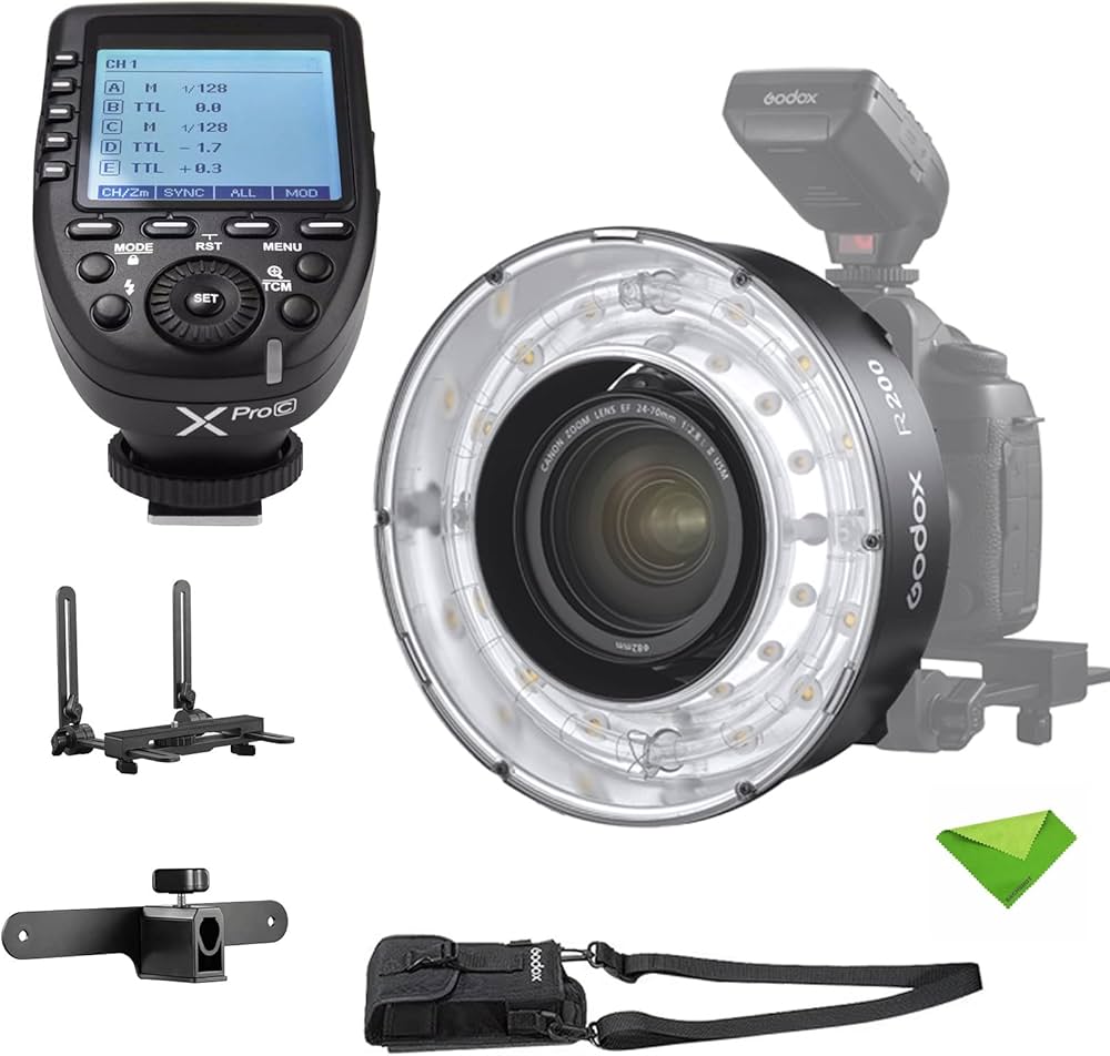 Godox: ha anche rilasciato una serie di accessori per R200 per dargli molta versatilità (venduti separatamente). E per portare con sé l'AD200, l'R200 include una tasca con una cinghia per mettere il tuo AD200 e appenderlo alla spalla. Godox AD-S200 Stick Flash Head 5800K Per AD200 E AD200Pro Pocket Flashes, 200Ws High Power Tube Light Con Barndoor Per Outdoor Ritratto Shooting E Wedding Shooting Flash Godox È dotato di un sistema di montaggio pieghevole, adatto per fotocamere Canon Nikon Sony Fuji Olympus Panasonic e ecc. DSLR. Come addon AD200: è letteralmente solo la testa da 640 g e tutta l'elettronica dell'AD200 o AD200Pro è separata, sarà molto più facile tenerlo durante una sessione. E c'è una tasca per riporre tutto al suo interno. Flash ad anello Godox R200: conferisce agli occhi del vostro soggetto una luce morbida e una qualità luminosa simile a quella alogena. La luce ad anello ha una luce di regolazione da 10 W (20 perle luminose) con impostazioni di potenza bassa, media e alta Flash ad anello Godox R200: conferisce agli occhi del vostro soggetto una luce morbida e una qualità luminosa simile a quella alogena. Ci sono 1380 Lux a 1,6 'fuori. Se non si desidera utilizzare il riflettore, sono disponibili anche griglie e un set di gel per la testa standard R200 senza riflettore.