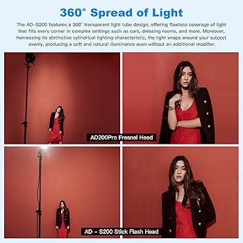 Godox AD-S200 Stick Flash Head 5800K Per AD200 E AD200Pro Pocket Flashes, 200Ws High Power Tube Light Con Barndoor Per Outdoor Ritratto Shooting E Wedding Shooting