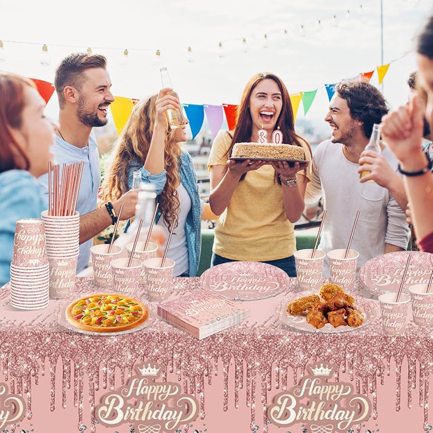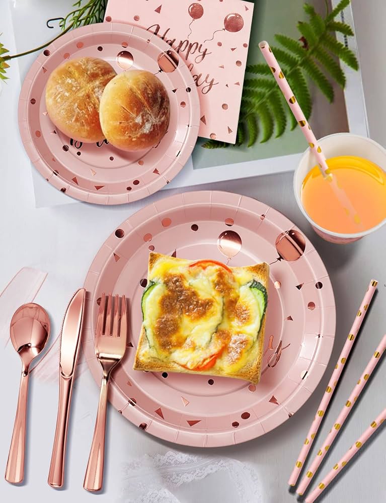 Stoviglie Per Feste Di Compleanno, Set Di Piatti Da Festa Rosa Da 132