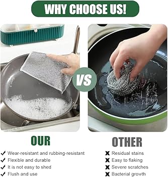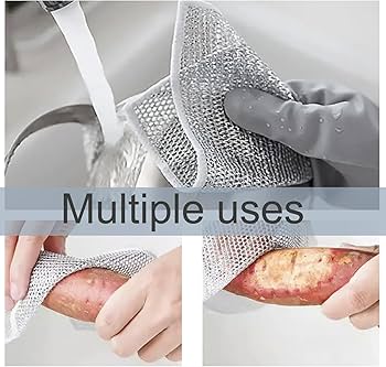 Durevole e riutilizzabile: questi panni in acciaio resistenti e riutilizzabili sono perfetti per la pulizia di utensili da cucina, auto, elettronica, occhiali, gioielli, acciaio inossidabile, elettrodomestici, mobili e molto altro ancora. AWAVM 10 pezzi Stracci multiuso in filo metallico, canovaccio multifunzionale in filo antigraffio,stracci multiuso per lavare i piatti bagnati e asciutti per la pulizia dei piatti (monostrato Produzione efficiente di schiuma, il nostro panno per piatti in filo di acciaio adotta un design a foro fine, che può produrre schiuma ricca ed è molto adatto per una pulizia efficiente di stoviglie, pentole e strumenti, ecc. AWAVM 10 stracci multiuso antigraffio per lavare i piatti, lana metallica, stracci multiuso per lavare i piatti per bagnati e asciutti, panno in microfibra riutilizzabile per la pulizia della cucina Forte pulizia, nessun danno Il nostro panno per lavastoviglie in filo di acciaio adotta una tecnologia avanzata di tessitura a griglia diamantata e materiale metallico di alta qualità, che può facilmente rimuovere ruggine, macchie di olio, ecc. senza danneggiare la pentola o le mani. Mantieni la tua cucina pulita e organizzata, con un panno per piatti a portata di mano. Questo panno per lavastoviglie è resistente e offre prestazioni di pulizia di lunga durata. Inoltre, può asciugare rapidamente, garantendo la pulizia per un uso futuro. Goditi un'esperienza di pulizia igienica e comoda. Pulizia forte, nessun danno: il nostro panno per lavastoviglie in filo di acciaio adotta una tecnologia avanzata di tessitura a griglia diamantata e materiale in filo metallico di alta qualità, che può facilmente rimuovere ruggine, macchie di olio, ecc. Vileda Actifibre Straccio In Filo Metallico 10pz Riutilizzabile Multiuso Per Piatti E Pulizia 95647691 Panni Magici Argentati Assorbimento istantaneo dell'umidità e asciugatura rapida: grazie al design superficiale del tessuto a squame di pesce, il nostro panno per la pulizia della cucina può assorbire istantaneamente l'umidità, ottenendo una pulizia rapida ed efficiente. Basta immergerlo in acqua per liberare i suoi effetti magici e risolvere facilmente le macchie.
