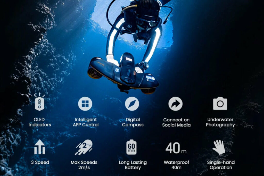 Sublue Navbow Underwater Scooter Dual Motors With Action Camera Mount Low Battery Alarm 3 Gear Speed 2m/s 60 Minutes 40M Swimming Pool Diving Snorkeling Water Scooter For Adults (Navbow Green