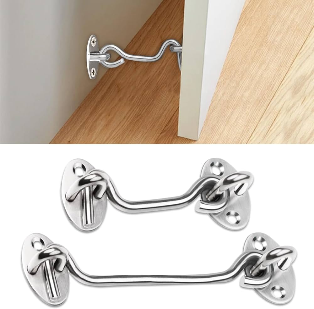 Sumbirg 2 Pezzi Gancio Per Cabina Finestra Gancio Chiavistello Serratura Chiusura A Occhiello Acciaio Inossidabile Per Porta,Finestre ,Fienili,Capanni(Argento