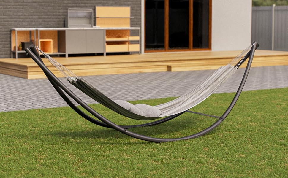 Inoltre, la superficie è impermeabile e resistente all'usura, riducendo efficacemente l'influenza del tempo. Inoltre,la superficie impermeabile è adatta per camere da letto, balconi, giardini, campeggi, ecc. È ideale per soggiorno, balcone, cortile, giardino o campeggio, ecc. ★Facile da Montare★ Per facilitare il montaggio, le parti del supporto per amaca sono state numerate in anticipo. Inoltre, la superficie verniciata a polvere facilita la pulizia e la manutenzione. VANTAGGI Robusta struttura in ferro Piedini antiscivolo Può essere usato all'interno o all'aperto Design regolabile in altezza Elevata capacità di carico fino a 200 kg Quattro punti di supporto per una maggiore stabilità Superficie impermeabile e resistente all'usura SPECIFICAZIONE Colore: nero Materiale principale: ferro Dimensioni complessive: 276 (L) X97(P) X 122 (H)cm Peso lordo: 16 kg Gamma di lunghezze amaca applicabile: da 3,5 a 4 metri Portata massima: 200 kg PARTI 1 X supporto per amaca 1 X istruzioni Avviso di sicurezza AVVERTENZA: La capacità massima di carico è di 200 kg. Assicurarsi che l'amaca sia sempre ben ancorata a supporti stabili e sicuri. ★Struttura più Stabile★ Grazie all'area di contatto più ampia e al robusto telaio in metallo, il supporto per amaca è più stabile. Il supporto per amaca è la scelta migliore per uso interno ed esterno. ★Design Regolabile★ 2 catene metalliche e 2 ganci a forma di S regolano l'altezza dell'amaca quando è in uso per adattarsi a diversi tipi di amaca. Utilizzare le catene e i ganci forniti per regolare l'altezza dell'amaca. Con il comodo supporto, puoi utilizzare le amache sempre e ovunque. IN STOCK: GOPLUS Supporto per Amaca, Portata di 150 kg, Telaio in Metallo, Montaggio Facile, Portatile e Stabile, Ideale per Cortile, Giardino, Cortile, Balcone, PQ3761IT al miglior prezzo. Consegna rapida in tutta Italia Lunghezza dell‘amaca adatta: 275-360cm Balcone Arredo Supporto Per Amaca Doppia 'Easy' | Nero | AmacaGigante.it Amaca Da Campeggio ★Materiali in Ferro di Alta Qualità★ Il supporto per amaca è realizzato con l'eccellente materiale in ferro, che ha un'elevata resistenza e una buona tenacità, garantendo una maggiore durata. Puoi assemblarlo facilmente secondo le istruzioni dettagliate, senza bisogno di attrezzi. Descrizione prodotto DESCRIZIONE Realizzato in ferro di alta qualità, questo supporto per amaca presenta una buona robustezza e una maggiore durata.