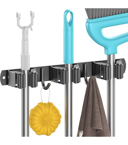 AceMining Supporto per scopa da parete, confezione da 2, 4 supporti e 4 ganci, supporto per mocio e scopa in legno con gomma antiscivolo, supporto per spazzola in legno di pino naturale, supporto da 4,5 su 5 stelle 49 Ampiamente applicabile a vari tipi di pareti: questo supporto da parete per mocio è adatto per vari materiali da parete come piastrelle, mattoni, pareti in cemento e porte in legno. Utilizzare completamente ogni centimetro di spazio: prima dell'installazione, assicurarsi di misurare le dimensioni del luogo di installazione. Pulito ed efficiente, massimizzando l'utilizzo dello spazio: attraverso un layout accuratamente progettato e ragionevole, il nostro supporto per scopa a parete si impegna a massimizzare l'uso dello spazio a parete, portando un'esperienza di vita pulita e bella al tuo ambiente domestico. Installazione rapida, uso immediato: il nostro gancio per scopa ha preparato un pacchetto di installazione con chiodi per te, garantendo che il processo di installazione sia facile e conveniente, senza la necessità di acquistare strumenti di installazione aggiuntivi. Porta Scopa In Acciaio Inox CaiYuanGJ 4 Pezzi Supporto Per Scopa, Supporto Per Scopa Da Parete, Adesivo, Gancio Scopa, Mop Scopa Supporto, Senza Foratura, Per Mop Conservazione In Bagno Cucina Ripostiglio Porta Scope Parete Poiché la dimensione del supporto per mocio e scopa è di 43 cm, assicurarsi che la larghezza dello spazio sia di almeno 45 cm, soprattutto quando si installa in spazi nascosti o stretti come porte e armadi.