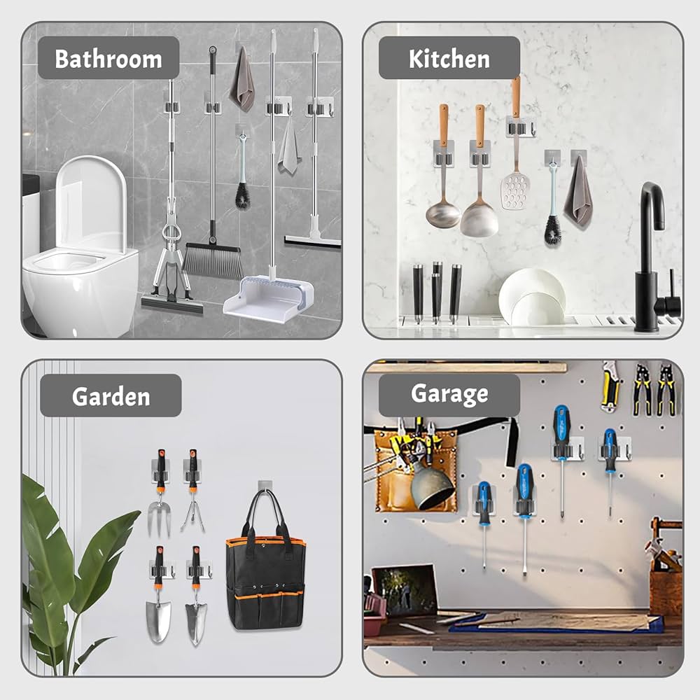 CaiYuanGJ 4 Pezzi Supporto Per Scopa, Supporto Per Scopa Da Parete, Porta Scope Parete Adesivo, Gancio Scopa, Mop Scopa Supporto, Senza Foratura, Per Mop Conservazione In Bagno Cucina Ripostiglio