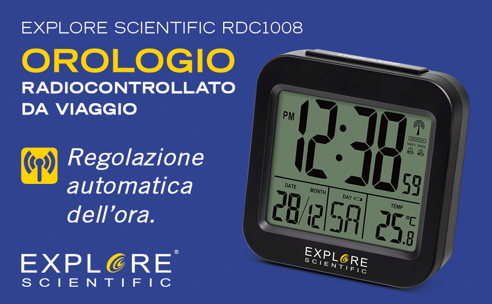 Sveglia Da Comodino Explore Scientific Orologio Sveglia Digitale LED Con Altoparlante E AUX Sveglia Con Proiettore Soffitto Sveglia radio controllata e calendario con indicatore di temperatura interna Retroilluminazione a LED bianco DOPPIO ALLARME & SNOOZE - La sua funzione di allarme ti permette di impostare 2 allarmi per 2 sveglie separate durante il giorno. La sua funzione SNOOZE permette di spegnere l'allarme per 5 minuti prima che ricominci a suonare Mostra la temperatura in °F/°C