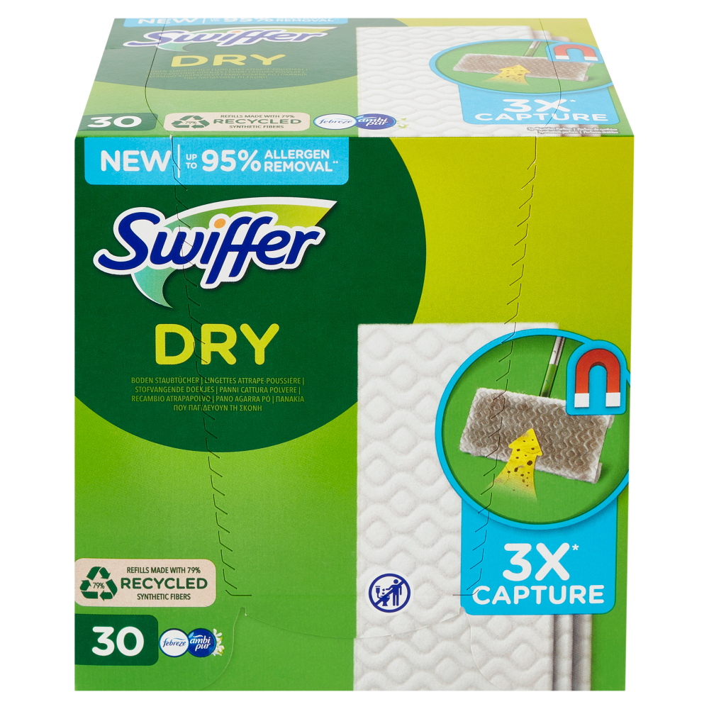 Imballaggio e coperchio realizzati al 75% in plastica riciclata. Pulizia facile e veloce Chi dice che Swiffer è adatto solo per il lavaggio a secco? Swiffer ci sono anche panni umidi per pavimenti con potenti detergenti che rimuovono lo sporco dalle superfici e lo chiudono Panni di ricarica realizzati con fibre naturali al 36%. Non utilizzare panni umidi per pavimenti Swiffer su pavimenti in legno grezzo, oliato o cerato, piastrelle o moquette non sigillate. Per rimuovere lo sporco ostinato con la striscia scrubber, basta ruotare la testa dello Swiffer Panni umidi per pavimenti, confezione da 24 panni (lavapavimenti venduti separatamente) Chi dice che Swiffer è adatto solo per il lavaggio a secco? Swiffer ci sono anche panni umidi per pavimenti con potenti detergenti che rimuovono lo sporco dalle superfici e lo chiudono. Sì, il vostro tergicristallo Swiffer non ha solo 1 ma 2 diverse funzioni: utilizzare i panni asciutti per raccogliere la polvere e i panni umidi per pulirlo. Per rimuovere lo sporco ostinato, basta ruotare la testa del tergicristallo e trattare i punti con la striscia verde della spazzola. Swiffer Panni Catturapolvere Swiffer Salviette Umidificate Per Pavimenti Con Profumo Morning Wet Jet
