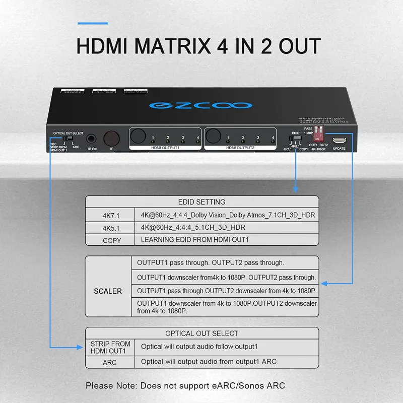 HDMI Matrix Switch 3X2 - Tendak 4K X 2K 3 In 2 Out HDMI Switch Splitter With Optical L R Hdmi Audio Extractor Support Arc With Ir Remote Control Power Adapter 255462366