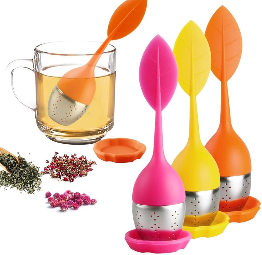 Il tè macinato o il tè molto fine fuoriescono dal buco lasciando uno strato sedimentario sul fondo PIACERE DEL TÈ PURO: L'infusore per tè in acciaio inossidabile e il coperchio in silicone sono inodori e insapore e offrono lo spazio per il tè per sviluppare un ottimo aroma! FACILE DA USARE: Riempi il colino da tè a forma di uovo con il tuo tè preferito Facile da pulire, basta sciacquare con acqua. Caratteristiche:Silicone alimentare, atossico e insapore, l'acciaio inossidabile 304 può essere portato direttamente a contatto con gli alimenti. il manico lungo non brucia le dita quando rimuovi l'infusore dall'acqua calda. Facile da pulire: facile smontaggio e montaggio, pulizia comoda, lavabile in lavastoviglie Facile da usare: scolapiatti per tè in silicone con un manico lungo, non brucia le dita con acqua calda, adatta per grandi tazze di tè e tè forte Questa teiera è lavabile in lavastoviglie, ma si consiglia il lavaggio a mano. Alta qualità: filtro da tè in acciaio inox,Design floreale in silicone durevole, comodo e morbido, può essere utilizzato ripetutamente e offre tè fresco e puro Specifiche:materiale:silicone e acciaio inossidabile Dimensioni:15,5 x 5 cm la confezione include:4 infusori per tè. Infusore Per Tisane Gatto Colino Da Tè, In Acciaio Inox, A Forma Di Sfera, Con Manico Fino A Te Nota: Si prega di non utilizzare nel forno a microonde o in forno. Regalo ideale per gli amanti del tè.