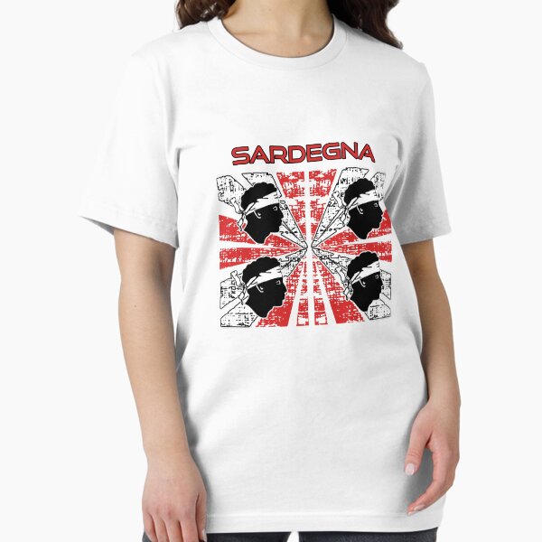 Si dice che i sardi siano ovunque nel mondo e insieme a loro non può mancare la bandiera della Sardegna: la bandiera dei Quattro Mori, sfondo bianco e croce rossa di San Giorgio che divide il vessillo in quattro parti Sardegna Bandiera Significato Sardegna - T-shirt 4 Mori Con Masherina Bianca T Shirt Sardegna 4 Mori Leggera, taglio classico, maniche con doppia cucitura e orlo inferiore