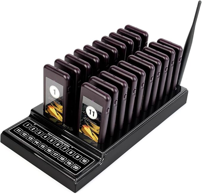Amichevole per la batteria Ricarica promemoria: quando il cercapersone inizia a caricarsi, la luce blu inizia a lampeggiare, puoi sapere che la batteria è normale. Cambia modalità di chiamata La modalità di chiamata predefinita è vibrazione + segnale acustico + flash, è alta e il cliente non perderà la chiamata. Ricorda il numero del cercapersone e dallo a un cliente, quando l'ordine è pronto, usa la tastiera per chiamare il cliente, il cercapersone vibrerà e suonerà per dire al cliente che è il suo turno di completare l'ordine. La distanza di utilizzo del cercapersone per ristoranti in un'area aperta può raggiungere i 500 metri; consentendo ai vostri clienti di visitare il ristorante a piacimento Cambia ID cercapersone e chiama i cercapersone contemporaneamente Un cercapersone può apprendere più ID. Tastiera a doppia fila di pulsanti; sistema cercapersone per ristoranti; rispetto ad altri sistemi cercapersone; il T111 ha un pulsante a doppia fila su cui è possibile fare clic per chiamare un cliente; invece di fare clic più volte Ricarica completa ricorda: quando il cercapersone è completamente carico, la luce blu si accende sempre, puoi rimuoverlo per farlo funzionare. 3 modalità di avviso: vibrazione + lampeggiante; cicalino + lampeggiante; vibrazione + cicalino + lampeggiante; è possibile scegliere il metodo di avviso più adatto in base all'ambiente del ristorante Il cercapersone non sarà sempre in carica. Basta premere brevemente il pulsante di impostazione, quindi premere il numero della tastiera, il cercapersone imparerà questo numero. Cicalino cercapersone; Ogni cercapersone è dotato di una batteria ricaricabile integrata da 360 mAh che può funzionare per tutto il giorno Il cameriere può chiamare il cliente a 500 metri di distanza in aree aperte, come piazze, spiagge. Pulsante di chiamata della tastiera ; Frequenza. 433.92MHz ; Corrente di Standby. 24mA ; Trasmetti la corrente. 100mA Fai da te il tuo cercapersone La carta sul cercapersone è fissata da un pezzo di plastica. La carta è modificabile. Se ritieni che sia troppo rumoroso che disturberà l'altro cliente, basta premere brevemente il pulsante di modalità sotto il foglio, puoi cambiare la modalità di chiamata in vibrazione + lampeggio o segnale acustico + lampeggio. Facile da configurare. Trasmettitore Hdmi Wireless Retekess T128-T117 Cercapersone Per Ristorante, Sistema Di Cicalino Porta Negozio Il cercapersone non perderà i dati a causa della mancanza di alimentazione a lungo termine. Utile se perdi alcuni cercapersone e devi sostituirli. Le persone avranno una profonda impressione sul tuo marchio. Per soddisfare le esigenze dei clienti, il sistema cercapersone T111 può cambiare la modalità di chiamata, modificare l'ID del cercapersone, modificare l'immagine del cercapersone.