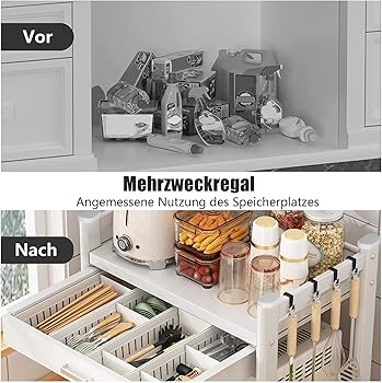 TBGJSYY Mensole Cucina, Mensola Microonde Porta Forno A Microonde Con Cassetto, Supporto Per Tostapane Da Cucina Per Piano Di Lavoro, Stoviglie Per Utensili Da Cucina A 2 Livelli, Ripiano Per Microo