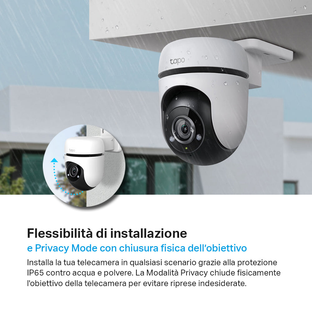 Prodotto 1: Visione notturna (fino a 98 ft) - Assicura la tua sicurezza fornendo una distanza visiva chiara fino a 98 ft anche nel buio totale. Dimensioni: 123,84 * 123 * 90 mm (senza modello di montaggio) 163,6 * 138 * 90 mm (con modello di montaggio). Tapo C500 Telecamera Wi-Fi Esterno FHD , 360° Visuale, Telecamera IP di Sorveglianza , IP65, Visione Notturna a Colori, Rilevamenti Smart AI, Audio Bidirezionale, Allarme sonoro personalizzato Telecamera Tapo C500 TP-Link Tapo C420S2 Telecamera Wi-Fi Esterno Qhd 2K E Interno 3MP, Batteria Senza Fili, Allarme Con Rilevamento Del Movimento, Ai Detection, Videocamera Sorveglianza : Amazon.it: Elettronica Tapo Telecamera Esterno Wifi Prodotto 2: Hai difficoltà nella configurazione? puoi risolverlo facilmente guardando il video di unboxing e configurazione pubblicato da tp-link in questa pagina Prodotto 2: Allarme acustico e luminoso integrato: innesca un effetto sonoro o luminoso per scoraggiare eventuali visitatori indesiderati Prodotto 1: Copertura visiva a 360°: offre una gamma orizzontale a 360° e verticale di 130° per coprire ogni angolo. Prodotto 2: Rilevazione movimento e notifiche istantanee: ricevi istantaneamente notifiche push dall'app quando viene intercettato un movimento; tp-link ha anche fornito una funzione avanzata di impostazione del tempo di registrazione specifico TP-Link Tapo C500 Telecamera WiFi Esterno FHD 1080P, 360° Visuale, Telecamera IP di Sorveglianza, Visione Notturna, Sensore di Movimento, Impermeabile IP65, Audio Bidirezionale,Compatibile con AlexaNota: Il Tapo C500 non ha una porta LAN e supporta solo connessioni wireless.