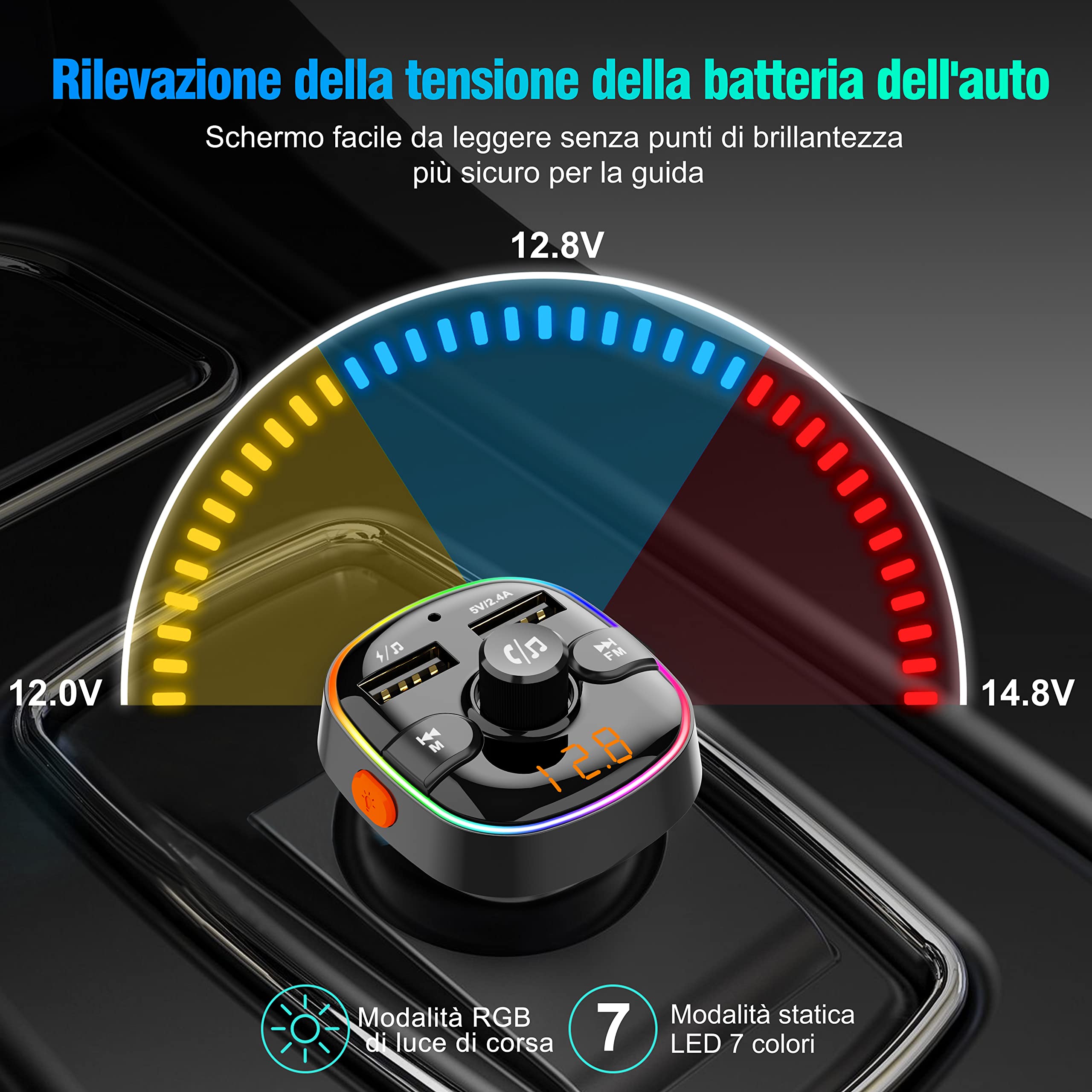 inclusa protezione da sovraccarico, cortocircuito e sovratensione, da usare, leggero e compatto, facile da trasportare. 3, tramite il disco U. Modalità di riproduzione multiple: modalità di riproduzione musicale: 1. Via Bluetooth. 2. Tramite scheda di memoria Micro (supporta il formato MP3, WMA, WAV). Ricarica USB: con 2 porte di ricarica USB, puoi collegare 'unità flash USB per riprodurre musica e caricare completamente il tuo dispositivo in breve tempo. Bluetooth Auto Accendisigari TRASMETTITORE AUTO WIRELESS MP3 USB Lettore Musicale Per Veicoli EUR 19 Kit Vivavoce Bluetooth Per Auto Trasmettitore FM Bluetooth: schermo del livello di tensione della batteria integrato da 1,8 pollici, che può anche visualizzare l'ID del chiamante, il volume e la frequenza FM durante la riproduzione di musica.
