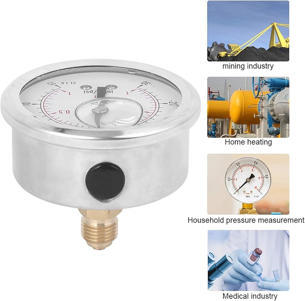 Vobor TS - PGG604 - 1bar 1/4BSP 0-1bar 0-15psi Edelstahl-Manometer Mechanisches hydraulisches Manometer - Schneller & kostenloser Versand ab 29€. Jetzt bestellen Se hai domande dopo l'acquisto, puoi contattare il nostro servizio clienti e ti daremo una risposta soddisfacente. 【Ambito di applicazione】I manometri sono ampiamente utilizzati in macchinari, petrolio, prodotti chimici, metallurgia, energia elettrica e altri settori. Manometro Matita TS-PGG604-4bar 1-4BSP Y60 Manomètre Radial Rempli D'Huile Jauge De Pression Pour Machinerie Manometro Pressione Acqua 【Display chiaro】 Il manometro dell'acqua mostra un'indicazione stabile e chiara, una lettura confortevole e una misurazione affidabile. 【Materiale di alta qualità】 Il manometro adotta una custodia in acciaio inossidabile IP65, che fornisce protezione per il manometro, che è comodo, resistente e sicuro.