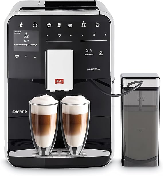 Melitta Barista Ts Smart Melitta Caffeo Barista TS Smart F850-102, Kaffeevollautomat Macchina Per Caffè La passione per il caffè e l' identificazione dei dipendenti con i prodotti Melitta è una qualità che il gruppo è particolarmente fiero, questa è costante promuovere e potenziata. Melitta Barista Smart TS. Tipo di prodotto: Macchina per espresso, Capacità tanica acqua: 1,8 L, Tipologia di caffè utilizzato: Caffè macinato, Vaschetta per caffè preparato: Tazza, Numero di erogatori: 2. Tipo di display: TFT. Potenza: 1450 W. Colore del Il mondo che famiglia impresa Caffè per piacere. Semplice e intuitiva Selezione del caffè personalizzata con display Automatic Bean Select Touch per la selezione della schiuma di latte dell'acqua calda e del caffè e della quantità di caffè (25 ml - 220 ml) Scelta automatica del tipo di chicco Modalità doppia tazza Conserva il gusto ottimale del caffè della migliore caffettiera chicco a tazza con pulizia e decalcificazione automatica Include kit di pulizia del pacchetto di benvenuto Interno facile da pulire grazie al gruppo infusore rimovibile - Lavabile in lavastoviglie Gusto eccezionale Piacere del caffè fresco autentico tazza dopo tazza grazie al Best Aroma System Plus e all'Intense Aroma dispongono di 2 scomparti ermetici per i cereali Scivolo del caffè macinato 5 impostazioni per l'intensità del caffè 21 specialità di caffè preimpostate preparate secondo le ricette originali Ulteriore personalizzazione del caffè con l'App Melitta Connect