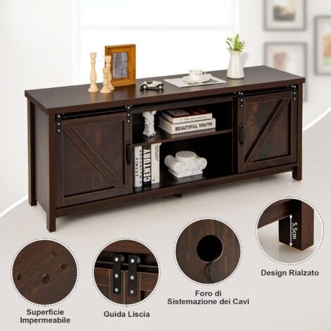 Il tavolo multifunzionale è sostenuto da 5 gambe, ha una struttura stabile e un'eccellente capacità di carico fino a 120 kg. Inoltre, i piedini di appoggio lasciano molto spazio tra il mobile e il pavimento per facilitare la pulizia. IN STOCK: COSTWAY Mobile Porta TV Fino a 55, Mobile TV con 2 Cassetti e 2 Ripiani Aperti, Tavolino per TV con Gambe in Legno, per Soggiorno, Camera da Letto, Portata 80 kg, 120 x 35 x 45,5 cm, TH32744ZM-EU al miglior prezzo. Consegna rapida in tutta Ital Inoltre, quattro vani portaoggetti, già due cassetti e due modalità di stoccaggio, possono soddisfare appieno le vostre esigenze quotidiane. 【Ampio Spazio di Archiviazione】Il mobile TV ha un'ampia superficie e può ospitare fino a un televisore da 65 pollici. 【Tavolo Versatile】Con le sue linee pulite ed eleganti, il nostro mobile TV moderno si adatta alla maggior parte degli stili di arredamento. 【Design Conveniente】I nostri mobili TV sono dotati di 2 ante scorrevoli e, inoltre, i divisori accanto ai cassetti sono regolabili in tre altezze (3 cm), in modo da poterne regolare la posizione in base alle proprie esigenze. Descrizione prodotto Descrizione: Migliora la tua esperienza di visione TV con il nostro mobile TV oversize che combina materiali selezionati e un aspetto elegante. Verificare che il mobile TV sia stabile e non presenti rischi di ribaltamento una volta installato e caricato. Tenere lontano dai bambini durante l'assemblaggio e l'uso. Porta Tv Da Terra Mobile COSTWAY Mobile TV Per TV Fino A 50 Pollici, Mobile Porta TV Con 2 Ripiani Aperti E Struttura Metallica Tavolino Per Tv Per Soggiorno E Camera Da Letto Marrone Rustico 81660517 Mobile Soggiorno