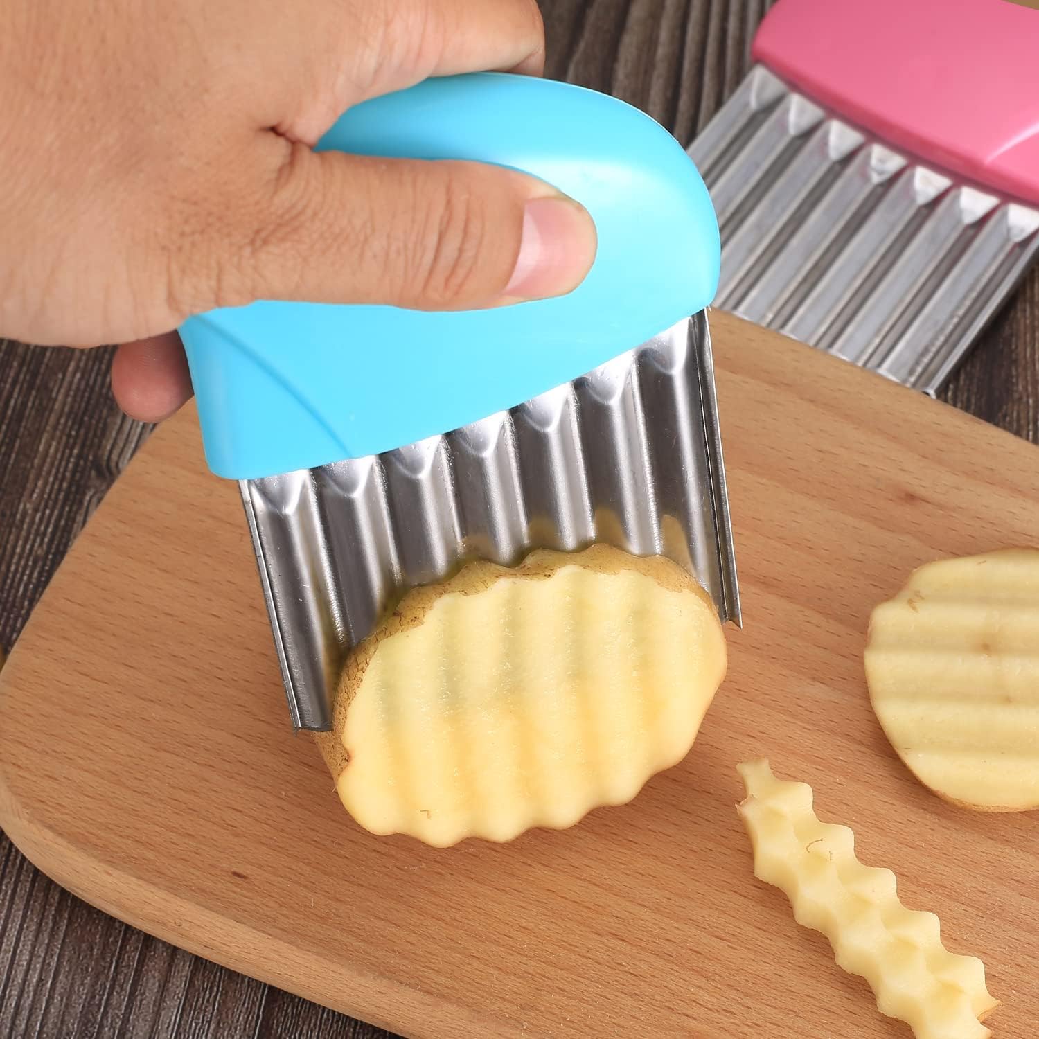 Vwoqiy 4 Pezzi Taglia Verdura, Coltello per Fette di Patate, Affettatrice di Verdure Patatine Taglierina ondulata in Acciaio,è un interessante coltello che permette anche ad un bambino/a sotto controllo di un adulto di divertirsi a tagliare qualsiasi ortaggio 【Facile da pulire】 Grazie alla forma piccola e delicata, il coltello ondulato è facile da pulire in lavastoviglie o a mano e può essere pulito rapidamente a mano sotto l'acqua corrente, può essere riposto rapidamente, non occupa troppo spazio in cucina. Risparmia tempo per la preparazione del cibo. Coltello Per Verdure Vwoqiy 4 Pezzi Taglia Verdura, Coltello Per Fette Di Patate Mandolina Per Verdure Professionale 【Design ergonomico】 Il coltello wave ha un design ergonomico dell'impugnatura antiscivolo, un'impugnatura robusta per una buona presa, l'impugnatura è comoda da impugnare senza preoccuparsi che la taglierina scivoli dalle mani. 【Materiale Premium】 I tagliapatate sono realizzati in eccellente materiale PP e acciaio inossidabile, resistente alla corrosione e alla ruggine, robusto e durevole.