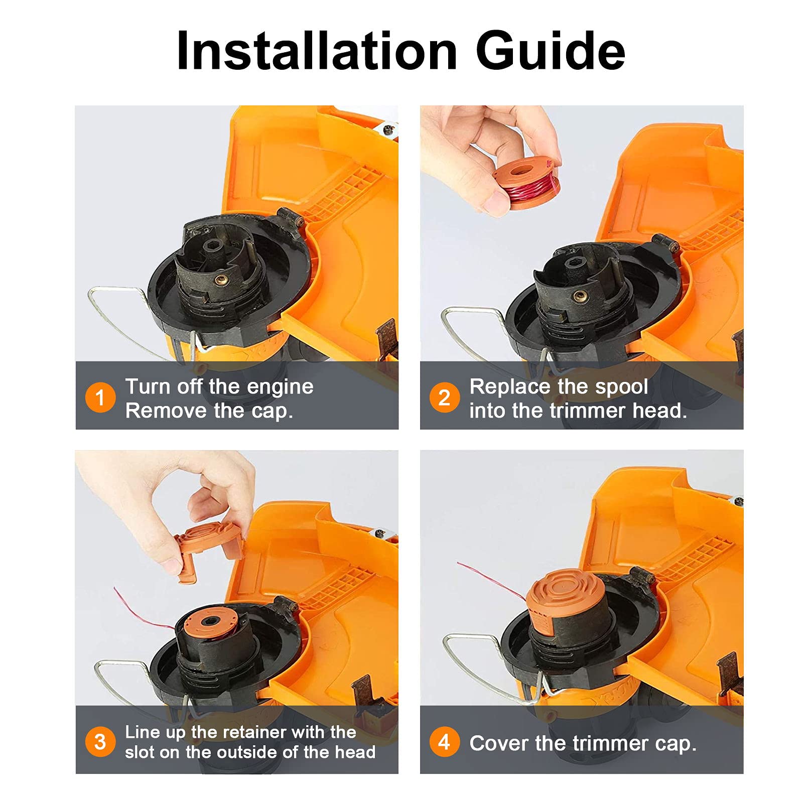 Bobina Per Tosaerba 6PCS Filo Tagliabordi Bobine Adatto Per Worx Tagliabordi Con 2 Copertura, Filo Per Decespugliatore 1.65mm E 3.0m Lunghezza Per Worx WA0004.1/WA0010 Bobina WORX Wa0004.1