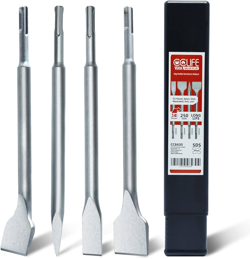 Flintronic Scalpelli Per Piastrelle SDS PLUS, Tagliapiastrelle Smussati 250 Mm X 40 Mm, Scalpelli Curvi Per Ceramica E Piastrelle