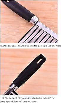 Manico Lungo, Coltello Ondulato Verdure in Acciaio Inossidabile 304, per Tagliare Patate, Cipolle, Pomodori e Limoni, 17x7.6CM Perfetto per i Cuochi Casalinghi: Che tu sia uno chef professionista o un cuoco casalingo, questo cutter ondulato è perfetto per preparare facilmente patatine fritte increspate di qualità da ristorante, verdure ondulate e forme di tagliafrutta nella tua cucina. Lame in acciaio inossidabile di alta qualità: le nostre frese sono realizzate in acciaio inossidabile di alta qualità, garantendo durata e affilatura di lunga durata per offrire sempre un taglio preciso. Questo coltello è perfetto per affettare patatine fritte, verdure ondulate e tagli decorativi per creare straordinarie opere d'arte. Versatile e durevole: il nostro tagliarughe non è solo per le patate, è uno strumento versatile per tutte le tue esigenze di affettatura. Attrezzatura Per Tagliare Le Patate Lama Ondulata In Acciaio Inossidabile Per Tagliare Patate E Verdure Misty 8cm 10 111 080 Attrezzo Per Tagliare Patate Che tu stia tagliando patate, carote o frutta, questo coltello ondulato garantisce risultati costanti per i tuoi piatti preferiti.