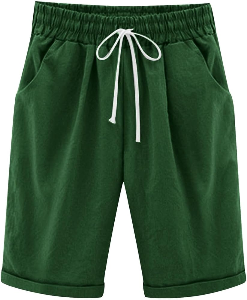 Pantaloncini Da Donna, Taglie Forti Da Donna, Lunghezza Al Ginocchio, Tinta Unita, Con Coulisse, Elastico In Vita, Bermuda Estivi, Casual, Morbidi Pantaloni A Gamba Dritta Con Tasche, Accessori