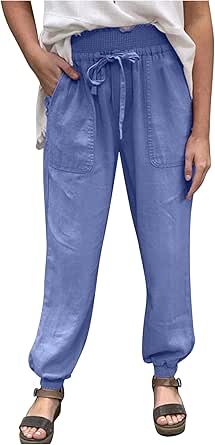 Pantaloni Tasca Pantaloni Casual Solido Taglie Forti Pantaloni Da Donna In Cotone E Lino Maglina