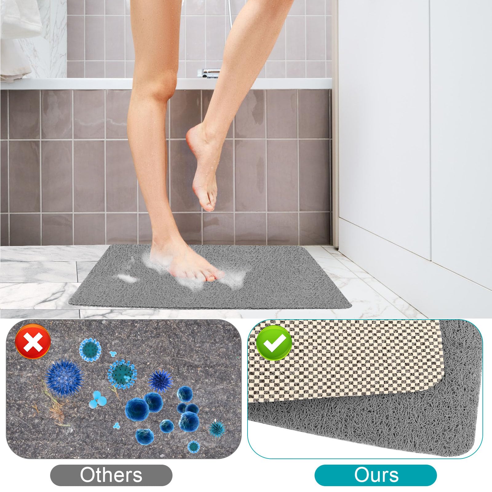 TAPPETINO DOCCIA ANTISCIVOLO - 60X60Cm Tappetino Da Bagno in Morbido Luffa Antim - EUR 15,57. IN VENDITA! [Materiale di alta qualità]Il tappetino antiscivolo per la doccia è realizzato in 226736091621 L'applicazione unica del tappetino da bagno non slip ti offre una sensazione calda e confortevole, adatta a case private o luoghi pubblici come ristoranti, scuole, parchi di divertimento. Essiccazione veloce e mantieni il suo aspetto fresco, anche una facile manutenzione. E colori e motivi brillanti renderanno la doccia più unica e bella. ✅【Accessori per la doccia ideali】Il nostro tappetino da doccia di loofah non slip anti -stampo misura 60x60 cm, che può essere abbinato alla doccia quadrata o essere tagliata per adattarsi a eventuali bancarelle di doccia a forma. Antiscivolo Doccia Tappetino Doccia Antiscivolo, Realizzato In PVC, Ad Asciugatura Rapida, Antiscivolo Per Vasca Da Bagno, Doccia (40 X 60 Cm Tappeto Doccia ✅【Drenaggio altamente efficiente】Il tappetino doccia è dotato di un sistema di drenaggio altamente efficiente con più fori, promuovendo la circolazione rapida dell'acqua e dell'aria per l'essiccazione rapida e il rischio ridotto di crescita della muffa.