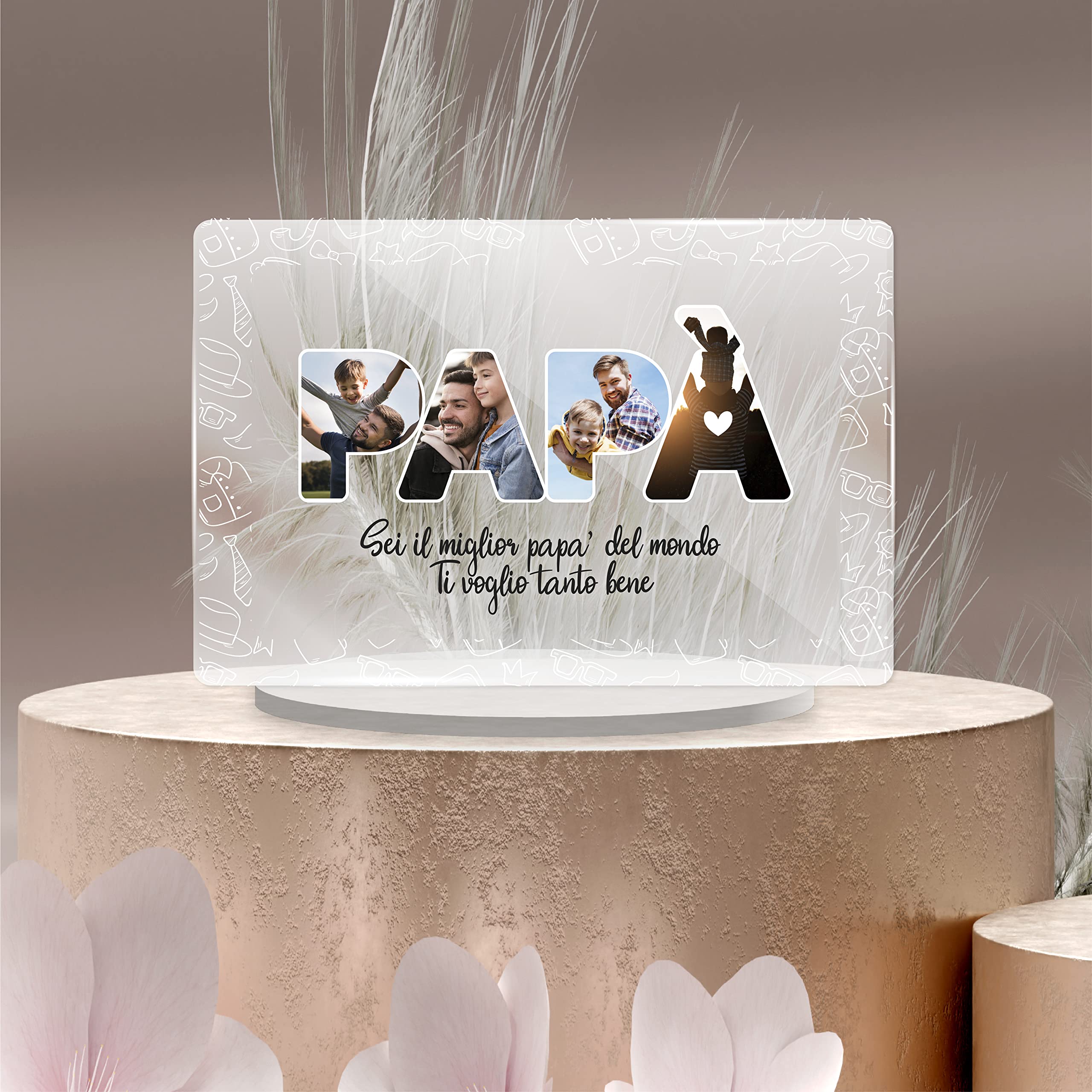 ULTERIORI INFORMAZIONI Targhetta in plexiglass con base in legno, disponibile in due dimensioni: 15×11,5 cm oppure 20×16 cm. ATTENZIONE! A causa della natura artigianale del prodotto, si raccomanda di NON pulire la targhetta con alcool o altri solventi. L * La base di sostegno per la nostra targa musicale viene fornita in omaggio all'interno della confezione . Made in Italy abbiamo deciso di puntare sull’artigianato e sul saper fare. Regalo Mamma San Valentino Con Foto E Dedica - Top Idee Regalo Targa Personalizzata Inviaci la foto, scegli il carattere ed il suo colore, comunicaci il nome e la dedica e noi realizzeremo per te, la testimonianza del vostro amore su plexiglas di primissima qualità. Inserisci la foto di quel preciso istante e realizza una delle nostre targhe personalizzate.