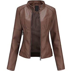 Generico Giacca Corta Da Donna In Pelle PU, Giacca Tasche Con Cerniera, Giacca In Pelle PU Per L'autunno E L'inverno Giubbotto Donna Giubbotto Pelle Invernale Donna