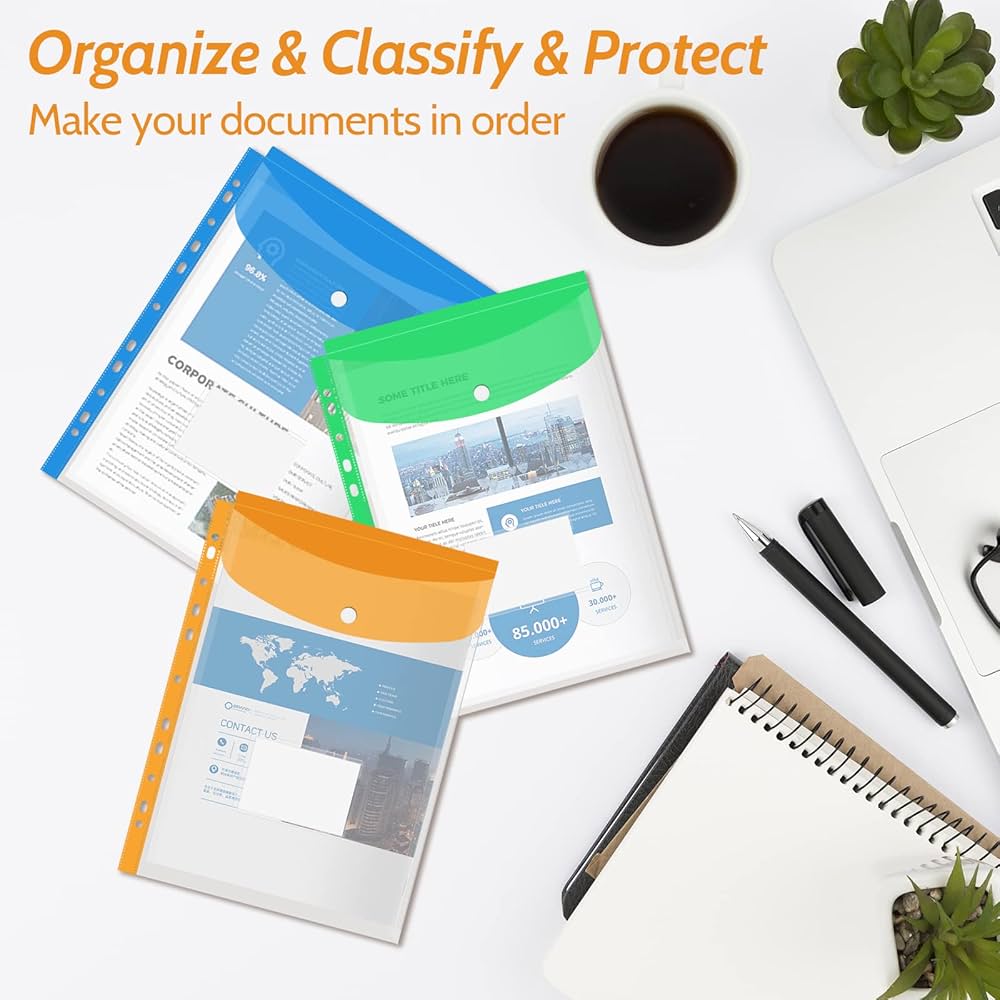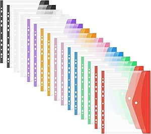 Compra Ansook 14 Pezzi A4 Tasche Perforate Espandibili,Portafogli A4 Cartelle in Plastica,Custodia Per Documenti in Plastica Trasparente A4 con Bottoni Automatici ed Etichette,7 Colori Ampia gamma di usi: la borsa portadocumenti A4 impermeabile a 11 fori ti aiuta a organizzare i file a scuola, casa, viaggi d'affari, ufficio, biglietti da visita, ricevute, fatture, documenti, documenti, contratti, cancelleria o forniture per ufficio. Buste portatili a fogli mobili per organizzare e classificare i documenti, non c'è bisogno di aprire le buste per trovare rapidamente i documenti. Buste Trasparenti A4 Con Fori Tasche Perforate In Plastica Trasparente A4 Con Chiusura A Buste Forate Trasparenti A4 Tasche per etichette classificate: ogni busta A4 con velcro ha tasche individuali per etichette con lettere che supportano l'etichettatura scritta a mano/stampata. Materiale ecologico e durevole: le tasche trasparenti per documenti A4 sono realizzate in pellicola PP ecologica di alta qualità, atossica, inodore, impermeabile e antipolvere, riutilizzabile, protezione di lunga durata contro umidità e macchie.