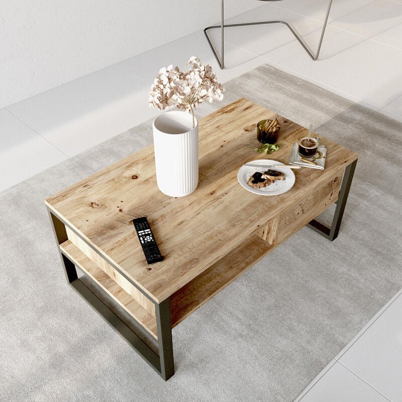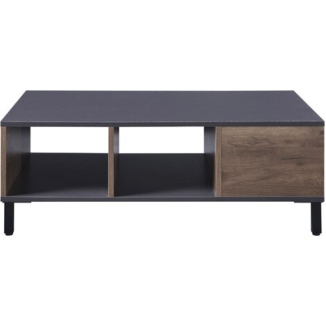 Tavolino Basso Da Divano 'Leppävirta' Con 3 Scomparti - Gambe In Metallo - Rovere Rustico/Antracite [en.casa