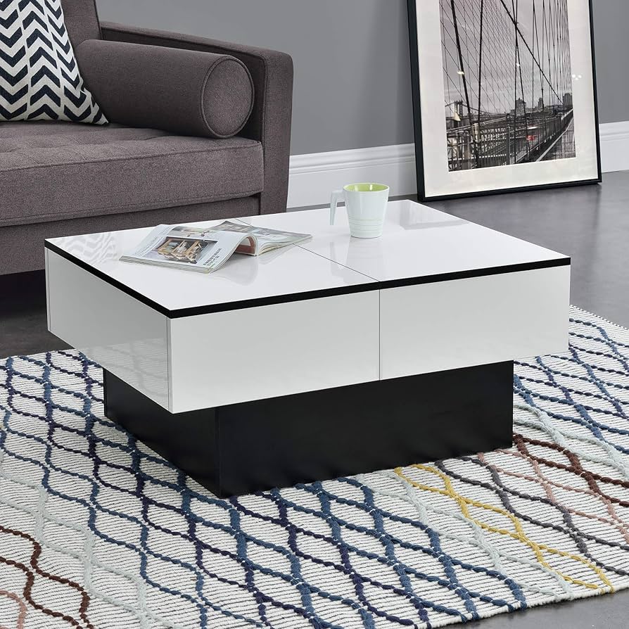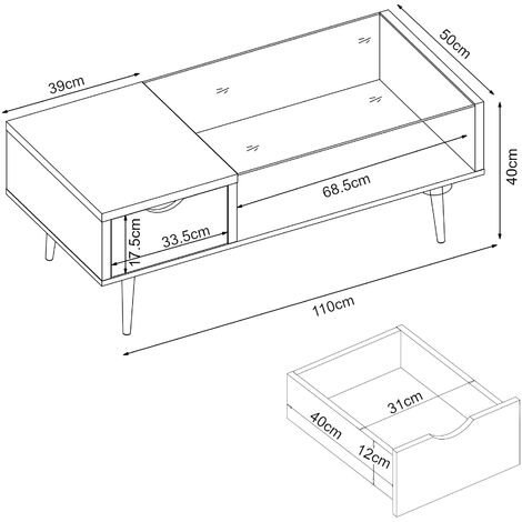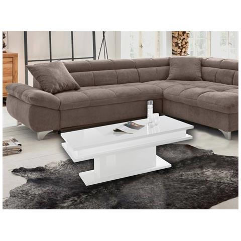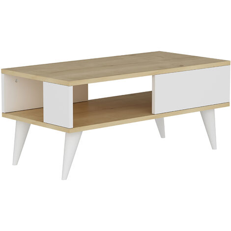Tavolino Basso Da Salotto 'Ludvika' Con Scomparto Semiaperto E 4 Piedini - Effetto Noce / Bianco