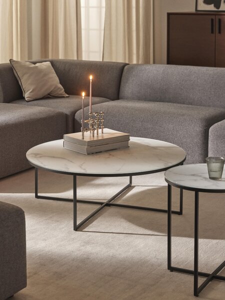 Tavolino Basso Da Salotto Tavolino Basso 'Kolari' In Metallo Nero Con Piano Rotondo In Vetro En Casa 86143139 Tavolino Salotto Può essere posizionato di fronte al divano o alle poltrone, in modo da creare un'area dedicata al relax. tavolino salotto basso tavolini mdf Sulla superficie possiamo riporre oggetti come riviste, libri, bicchieri, telecomandi e altri oggetti di uso quotidiano. Il tavolino basso 'Aulum' è un elemento d'arredo versatile e funzionale. Materiali: - Piano del tavolo: truciolare - Telaio: metallo Prodotto di [en.casa] Descrizione: - Tavolino basso con piano d'appoggio di forma rotonda - Costruzione stabile grazie al telaio di base circolare - Mobile realizzato di materiali resistenti e durevoli nel tempo Materiali: - Piano del tavolo: truciolare - Telaio: metallo Dimensioni (AxØ): 50 x 70 cm Colore: - Piano del tavolo: marmo, bianco - Telaio: Argento La spedizione include: 1 x tavolino da salotto Prodotto di [en.casa] Invece quando abbiamo ospiti in casa il tavolino serve anche per appoggiare comodamente le bevande o gli snack mentre si gode una serata in compagnia.
