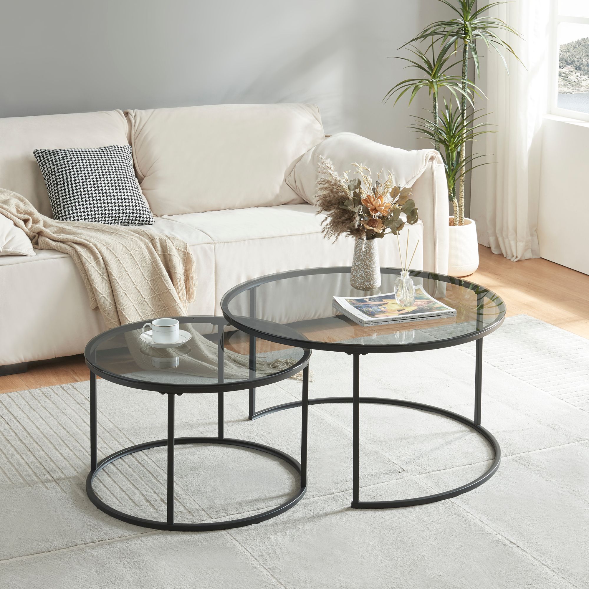 Tavolino Basso 'Kolari' In Metallo Nero Con Piano Rotondo In Vetro En Casa 86143139