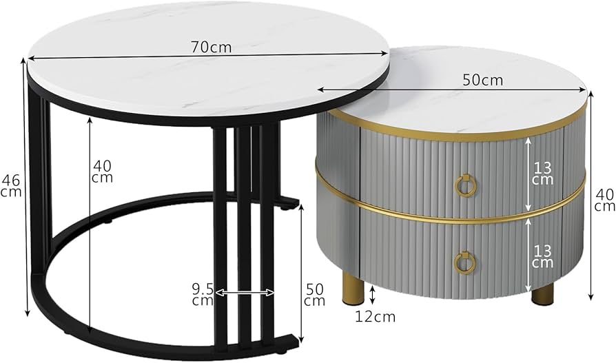 padova trio tavolino rotondo mdf piano Dimensioni totali: tavolo grande - 70 x 70 x 46 cm, tavolino piccolo - 50 x 50 x 40 cm Qualità affidabile: il tavolo rotondo è realizzato in MDF e plastica, garantendo una buona stabilità e resistenza chimica. Tavolino Da Salotto Tavolino Rotondo In MDF 2 In 1, Con Piano Di Lavoro Lucido E 1 Piano Di Policarbonato Trasparente Adatto a diverse scene residenziali: i doppi tavolini rotondi possono essere utilizzati insieme o separatamente come due tavolini da caffè. Stile di lusso leggero: il motivo marmo e il piano del tavolo lucido creano un'atmosfera elegante e lussuosa per questo tavolo da lavoro e la trama unica dei cassetti rende la tua casa più artistica e adatta per il tuo arredamento moderno.