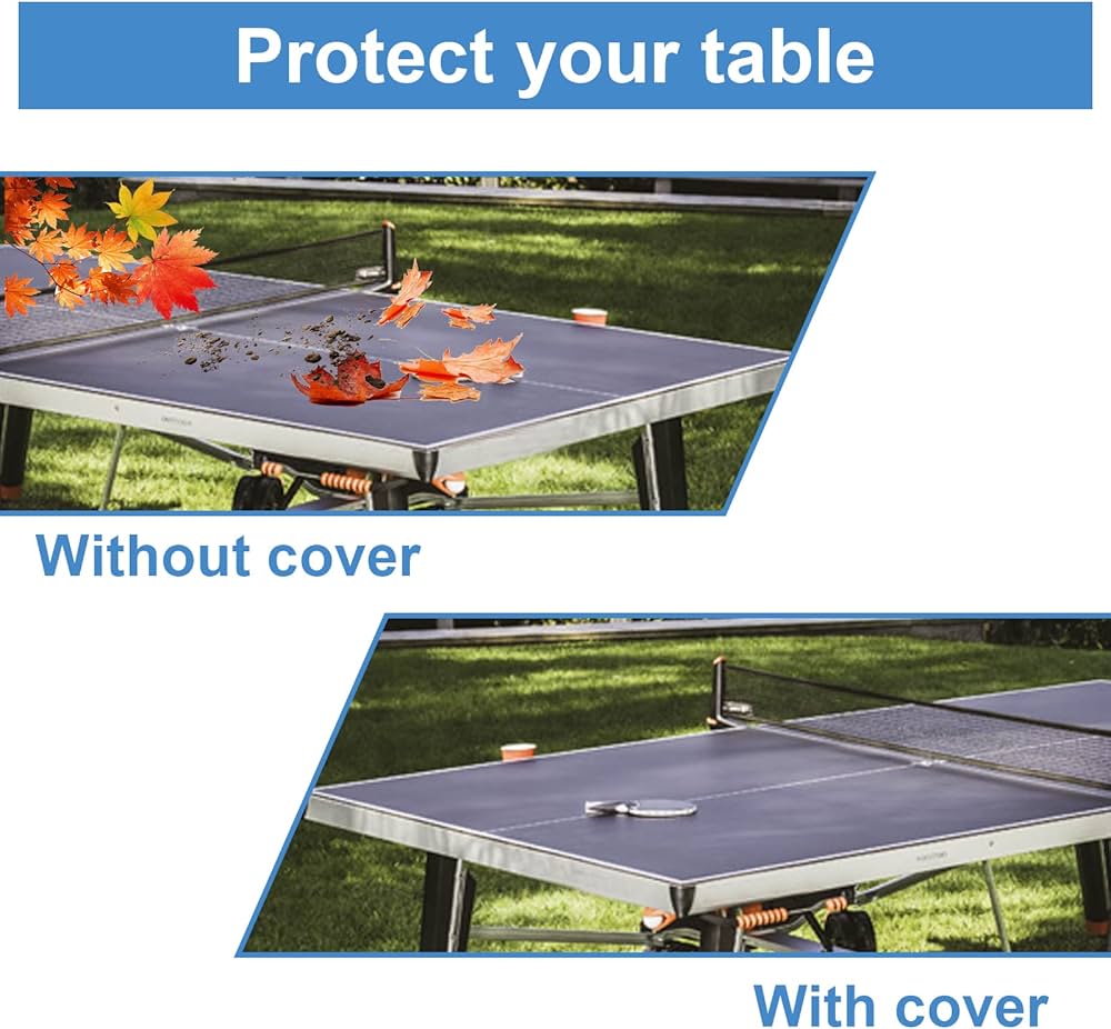 Questo impedisce al vento di soffiare via la copertura protettiva per tavolo da ping pong e protegge il tavolo da ping pong in modo affidabile. Negli angoli inferiori si trovano due pratiche fibbie a molla che mantengono la custodia protettiva da ping pong saldamente in posizione. Copertura Tavolo Esterno Tavolo Pieghevole Da Esterno Mutsitaz Premium Full Size Table Tennis Di Tavolo Da Ping Pong Copertura Impermeabile Interno Esterno 185 × 165 × 70 Cm Tavolo Ping Pong Telo Copritavolo Ping Pong La custodia protettiva da ping pong è resistente ai raggi UV e all'acqua, con uno speciale rivestimento che blocca efficacemente pioggia, neve, sporco e raggi UV dannosi. Design antivento: il design antivento è dotato di tecnologia a doppia cucitura. In questo modo è possibile utilizzare facilmente la custodia protettiva per tavolo da ping pong dopo l'uso e riutilizzarla rapidamente se necessario, senza occupare molto spazio. Le migliori offerte per Custodia Impermeabile per Tavolo Da Ping Pong , Protezione Antipolvere per Tavolo sono su Confronta prezzi e caratteristiche di prodotti nuovi e usati Molti articoli con consegna gratis In questo modo il tavolo da ping pong rimane protetto anche in condizioni climatiche estreme e mantiene la sua funzionalità per lungo tempo. Materiali di alta qualità: la custodia protettiva da ping pong è realizzata in robusto tessuto Oxford 210D, che garantisce un'elevata impermeabilità. Facile da riporre: la custodia protettiva da ping pong viene fornita con una pratica custodia in cui può essere riposta comodamente e risparmiando spazio.