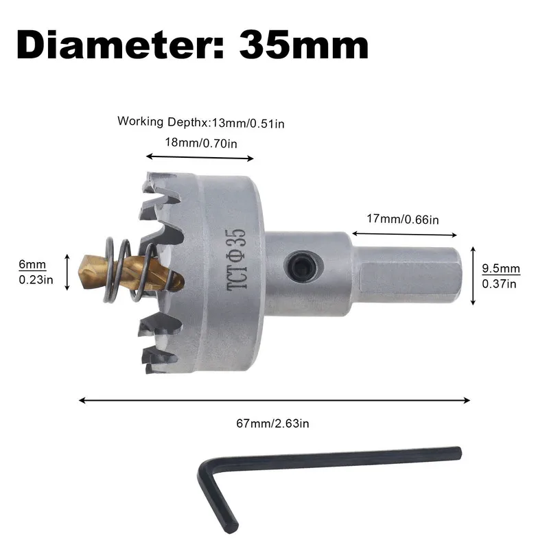 Design universale Chunk Il trapano professionale offre prestazioni eccellenti. Il nostro prodotto è supportato dal nostro produttore con una garanzia di qualità. Design intelligente: Le frese per fori utilizzano un design a molla, che è conveniente per rimuovere i trucioli, l'efficienza di perforazione è maggiore e tiene saldamente. Per punte da trapano in acciaio più fini, ideali per l'installazione di serrature, pomelli in porte e armadi o per praticare fori di diametro maggiore, set di seghe a tazza per trapano da banco, trapano magnetico, trapano a pistola, trapano a percussione, ecc. Materiale di alta qualità] Questa sega a tazza è realizzata in acciaio ad alta velocità HSS4341, elevata durezza, resistente all'usura. Sega per sega a tazza in acciaio e acciaio inossidabile ad alta velocità, alesatore in lamiera. [5 dimensioni] 16 mm Caratteristiche: Durevole e pratico Offri 5 tipi di seghe a tazza H.S. 5 Taglie: Ø16 mm, 18,5 mm, 20 mm, 25 mm, 30 mm. Punta A Tazza Per Muro Set Di Seghe A Tazza Jutyum, Set Di 19 Punte In Metallo, Per Trapano Circolare, Per Tavola Di Frese A Tazza Design a punta a molle Le seghe a tazza HSS hanno un design a molla, possono espellere lo spazio vuoto tagliato, garantiscono una foratura stabile e sicura, affilata e ad alta precisione. Ogni punta è confezionata singolarmente in una scatola di plastica e ogni punta è anche oliata - protezione dalla ruggine. Fino a una maggiore durata rispetto alle seghe a tazza bimetalliche. Applicazione: Sega a tazza HSS e acciaio inossidabile, sega a tazza, taglio liscio, in particolare resistenza agli urti, alesatore per lamiera. Punte in metallo duro rettificate di precisione per il taglio rapido di fori rotondi e puliti. S in 5 misure, soddisfa perfettamente le tue diverse esigenze, taglia perfettamente acciaio, ottone, acciaio inossidabile, rame, alluminio, fibra di vetro, resopal e altri laminati in pochi secondi.Nota: 1. Verificare l'integrità del trapano perforato prima dell'uso. 2. Quando si inserisce il trapano nel trapano, bloccare le tre superfici del portautensili corrispondente. 3. Durante la perforazione, assicurarsi che il trapano e il pezzo siano ad angolo retto. 4. Durante la foratura continua, la lama deve essere raffreddata con liquido di taglio. È perfetto per fare i buchi che ti servono.