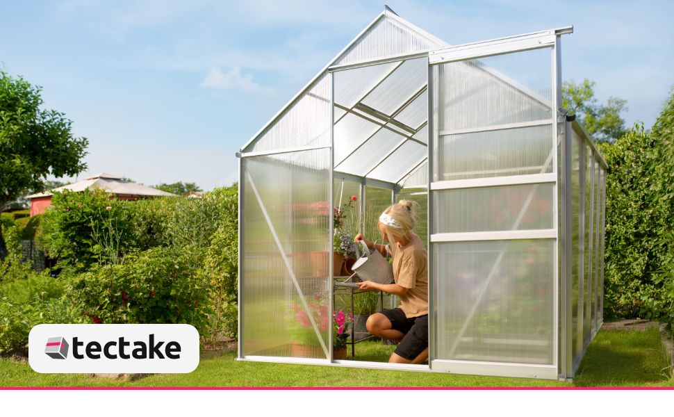 Tectake® Serra Da Giardino Con Telaio In Acciaio, 16 Griglie Di Appoggio In Metallo, Serra Per Orto Con Comoda Porta Di Accesso, Protezione Dai Raggi UV, 143x143x195 Cm