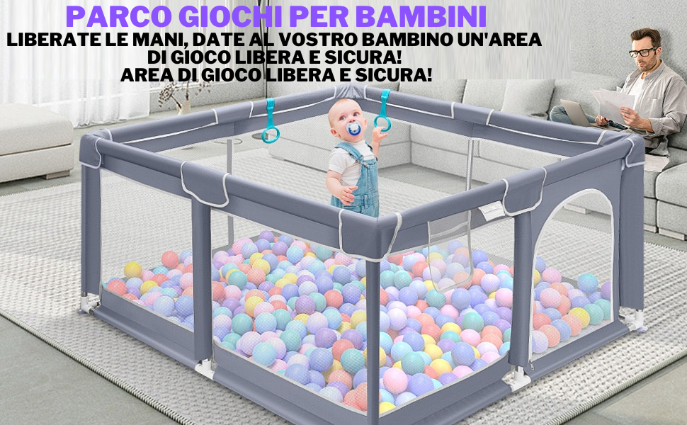 Come neo-genitori, ci sono sempre momenti in cui si ha bisogno di qualche minuto per andare in bagno, fare la doccia o dedicarsi ad altre cose quando si è a casa da soli con il proprio figlio. Recinto Per Bambini Teddle Box Bambini - Con 50 Palline – 120 X 120 Cm – Per Uso Interno Ed Esterno – Box Per Bambini – Grigio Box Neonato 48x pollici di tubo (Senza cuscinetti) 4 x giunto angolare superiore HuBorns - Box Bambini 120x120 cm con Vista a 360 Gradi, Box Recinto Per Bambini con Rete Traspirante e 2 Anelli Inclusi, Recinto Neonato Antiscivolo con Certificato CE, Playpen Sicuro e Resistente 294 🛠️ 𝗗𝗘𝗦𝗜𝗚𝗡 𝗣𝗜𝗘𝗚𝗛𝗘𝗩𝗢𝗟𝗘 𝗘 𝗣𝗢𝗥𝗧𝗔𝗧𝗜𝗟𝗘: Facile da piegare e trasportare, include una pratica borsa per il trasporto, perfetta per casa o da portare ovunque. ✅ 𝗦𝗣𝗔𝗭𝗜𝗢 𝗔𝗠𝗣𝗜𝗢 𝗘 𝗦𝗜𝗖𝗨𝗥𝗢: Il Box per Bambini 120x120cm offre un'area spaziosa e sicura per far giocare il tuo bambino in totale tranquillità grazie alla sua struttura robusta e stabile. Descrizione prodotto Liberate le mani, date al vostro bambino un'area di gioco libera e sicura! 🌬️ 𝗥𝗘𝗧𝗘 𝗧𝗥𝗔𝗦𝗣𝗜𝗥𝗔𝗡𝗧𝗘: I pannelli in rete assicurano un'eccellente ventilazione e una visibilità ottimale, permettendo ai genitori di controllare sempre il bambino. Interagisce in qualsiasi momento, dando al bambino un senso di sicurezza. Non solo tiene il bambino al riparo da ogni pericolo, ma allo stesso tempo le mamme possono avere le mani libere per fare le loro cose. È proprio per questo che è necessario un box per bambini, in grado di trasformare qualsiasi luogo in uno spazio di gioco sicuro! 1 x Borsa di stoccaggio portatile 4 x Giunto angolare inferiore con ventosa 2 x Anello di trazione 🎮 𝗖𝗘𝗡𝗧𝗥𝗢 𝗗𝗜 𝗔𝗧𝗧𝗜𝗩𝗜𝗧À: Include baby grabber, accessori progettati per stimolare lo sviluppo motorio e tenere il bambino attivo e curioso. ✔️ 𝗔𝗗𝗔𝗧𝗧𝗢 𝗔 𝗢𝗚𝗡𝗜 𝗙𝗔𝗦𝗘: Ideale per bambini di diverse età, il box accompagna il loro sviluppo, fornendo uno spazio sicuro e stimolante per crescere.