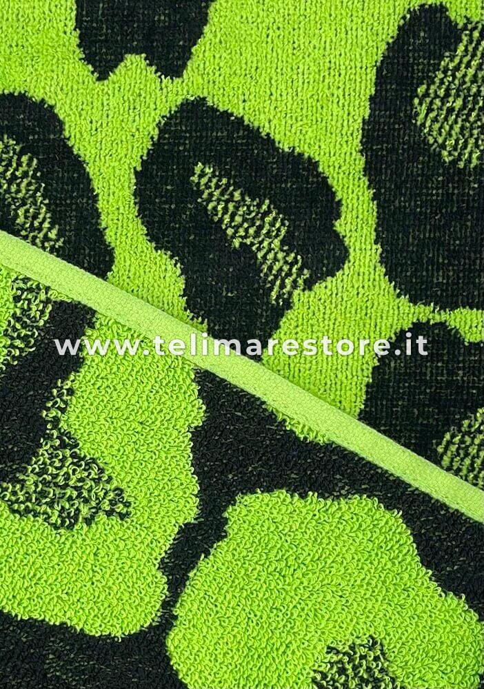 Telo Mare Singolo Fantasia Elefanti Verde 100% Spugna Di Cotone 86x165 Cm