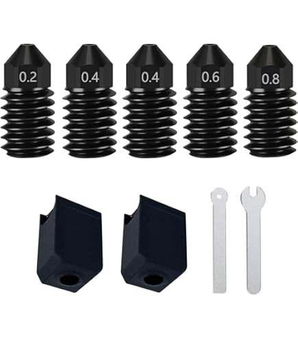 5 Pz Ugelli in Acciaio Temprato per P1p/P1s/X1/X1c/X1e/Kobra 3 Combo/Adventurer 5m/5m Pro 0.2mm 0.4mm 0.6mm 0.8mm con Copertura Extra in Silicone, Estrusore Hotend Hardened Steel Nozzle per Bambu Lab Si prega di confermare il modello di stampante 3D prima di ordinare STAMPANTE COMPATIBILE: questo kit hot-end è compatibile solo con Bambu Lab P1P/P1S/X1/X1C/X1E, per Anycubic Kobra 3 Combo, per stampanti 3D Flashforge Adventurer 5M/5M Pro. Ugelli Swiss 5 Pz Ugelli In Acciaio Temprato Per P1p/P1s/X1/X1c/X1e/Kobra 3 Bambulab A1 STAMPA AD ALTA VELOCITÀ: lo speciale design in acciaio temprato rende la testina di stampa uniformemente riscaldata, liscia e priva di bave all'interno, riduce la resistenza dell'aria e previene l'intasamento dei materiali di consumo, supporta la stampa ad alta velocità, rendendo il processo di stampa più efficiente e regolare AMPIA COMPATIBILITÀ: i nostri ugelli acciaio temprato progettati appositamente per Bambu Lab P1P/P1S/X1/X1C/X1E, per Anycubic Kobra 3 Combo, per stampanti 3D Flashforge Adventurer 5M/5M Pro, con una forte compatibilità, che rende facile l'aggiornamento della stampante per soddisfare le esigenze di stampa diversificate e migliorare l'efficienza del lavoro