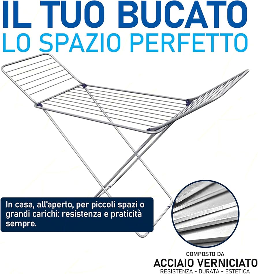 Ideale per l'esterno La struttura in resina 100% di Gimi Cucciolo è resistente, pratica e anti-ruggine, adatta anche all'esposizione a qualunque agente atmosferico e particolarmente indicata per le località balneari. Blocco per le ali Gimi Tender è dotato di un pratico blocco per le ali grazie a cui potrai riporlo senza il timore di pericolose aperture accidentali. Telaio in acciaio stendino gii aliante Caratteristiche Tecniche Fili spessi Grazie ai suoi fili spessi, Gimi Tender è in grado di sorreggere delicatamente il tuo bucato evitando la formazione di pieghe e segni, riducendo la fatica durante il processo di stiratura. Dimensioni da chiuso (LxPxH): 56x5x129 cm Made in Italy Ferma-prolunghe che evita aperture accidentali Prodotto in Italia Griglia di stenditura in alluminio Fili grossi antipiega Pratico e sicuro, le sue gambe in acciaio lo rendono resistente e duraturo mentre la griglia in alluminio 100% e il sistema di chiusura a scorrimento ne facilitano l'uso quotidiano, semplificando l'apertura e la chiusura. Dimensioni da aperto (LxPxH): 174x56x113 cm Sistema di chiusura a scorrimento Stendibiancheria Da Esterno Stendibiancheria In Alluminio Gimi Tender 20 Metri Di Stesura Gimi Stendibiancheria Da Balcone