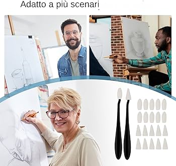 Questo strumento versatile è perfetto per creare sfumature, ombre e linee sottili nella tua opera d'arte. Set completo di miscelazione: questo set include 4 penne per schizzi artistici e 40 punte di ricambio. 4 spazzole per schizzi, con 60 testine in spugna, strumenti per disegnare schizzi, penne con spugna per sfumare artisti, set di spugne per cancellare i tagliabordi, per studenti artisti, schizzi a Tergicristalli Di Miscelazione Per Disegnare, Con 20 Testine Di Spugna, Cancellare Penne, Testine Di Pulizia Per Strumenti Di Disegno Artistici : Amazon.it: Casa E Cucina Riutilizzabili e facili da pulire: le testine in spugna sono riutilizzabili e facili da pulire, rendendole una scelta economica ed ecologica per gli artisti. Ampia gamma di applicazioni: adatto per schizzi, disegni a carboncino, lavori a pastello e molto altro ancora. Ideale sia per principianti che per artisti professionisti. Basta pulire dopo l'uso per prestazioni continue. Le testine in spugna sono solide ma flessibili, garantendo transizioni naturali e prestazioni di lunga durata.
