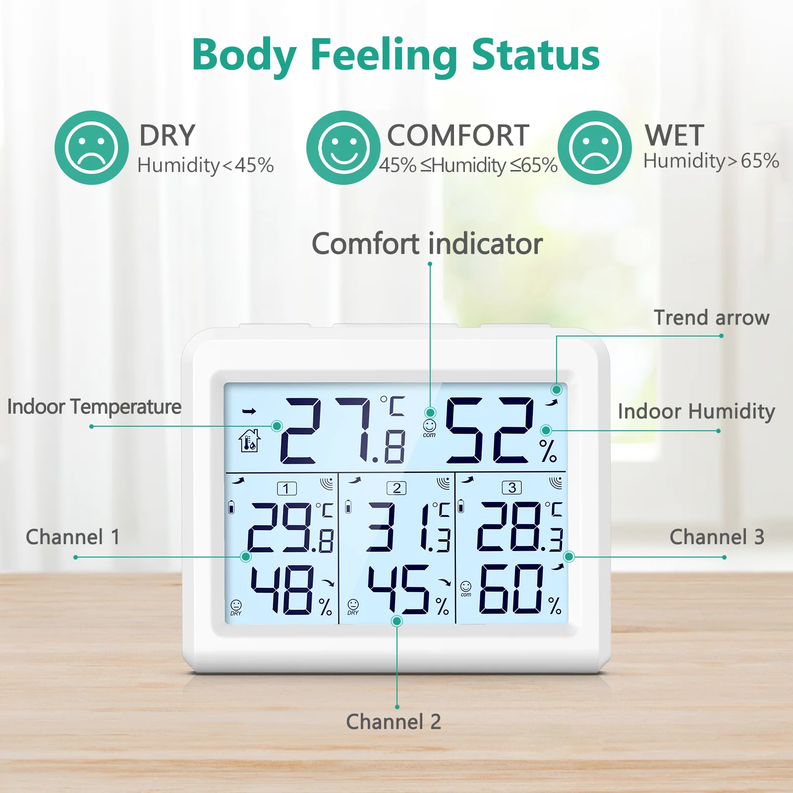 HUALANS Termometro Igrometro Digitale Professionale Con Touch-Button, Termometro Ambiente Termoigrometro Interno Retroilluminazione Monitor Temperatura Umidit%c2%a8%c2%a4 Da Interno Batterie Escluse