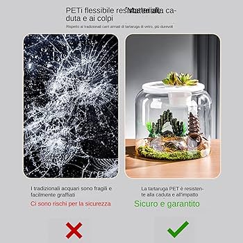 Dotato di un coperchio robusto e di prestazioni anticaduta, questo serbatoio ti consente di goderti la bellezza del tuo animale domestico da ogni angolazione. Sperimenta una nitidezza fenomenale: goditi la magnificenza naturale delle tue tartarughe marine con l'elevata trasmissione della luce del nostro acquario, che offre una chiarezza 4K che migliora ogni dettaglio. Una piattaforma integrata è perfetta per allevare le tartarughe, mentre il vetro cristallino garantisce dettagli vividi 'ambiente circostante. Esperienza elevante: migliora la tua casa con un affascinante mondo sottomarino. Descrizione prodotto Acquario e tartarughe, Habitat e tartarughe Acquario Per Tartarughe 40 Litri Habitat Per Rettili, Terrario Per Tartarughe, Gabbia E Terrario Per Tartarughe, Habitat Multifunzionale Per Tartarughe, Acquario Per Rettili Con Area Crogiolata, Terrario Per Tartarughe, Serbatoio Vasca Per Tartarughe D'acqua Goditi una lunga durata e un'usabilità senza sforzo con questo serbatoio leggero. Apprezza ogni angolo dei tuoi amati compagni. Specifica: Colore del prodotto: bianco Dimensioni del prodotto: circa 30,6x29,6x18,4 cm/12,05x11,65x7,24 pollici Peso del prodotto: 1100 g Materiale del prodotto: AS Capacità: circa 10 litri Lista imballaggio: * 1 pezzo (lampade e altri accessori paesaggistici non inclusi) Piattaforma basking*1 pz Piastra di copertura*1 pz Nota: A causa e diverse impostazioni di illuminazione e schermo, il colore 'articolo potrebbe essere leggermente diverso dall'immagine. Materiale robusto: il nostro serbatoio per tartarughe vanta prestazioni anticaduta, costruito con materiale AS di alta qualità e in grado di resistere a cadute fino a 10 metri. La piattaforma allargata garantisce una casa confortevole che il tuo animale domestico adorerà.